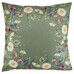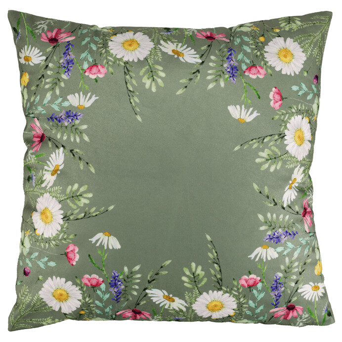 Polštář s výplní - vzor lučních květin, zelený, sametový, 45 x 45 cm
