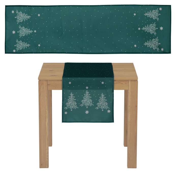 Ubrus - běhoun, motiv se stromky, 100% polyester, 40 x 150 cm, zelený