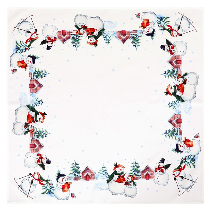 Ubrus bílý - se sněhuláky, 100% polyester, 80 x 80 cm