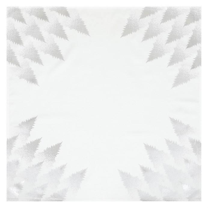 Bílo-šedý ubrus se stříbrnými vzory v podobě špiček jehličnatých stomů v jeho rozích, bude elegantní volbou na prostření svátečního stolu. Jeho rozměry jsou 80 x 80 cm a je ze 100% polyesteru. Jeho oku lahodící design bude nádherně doplňovat vánoční výzdobu vašeho interiéru a navodí tu pravou sváteční atmosféru.