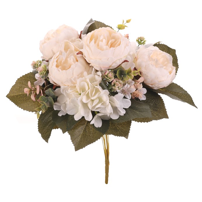 Pivoňka a hortenzie - umělá kytice, barva krémová
