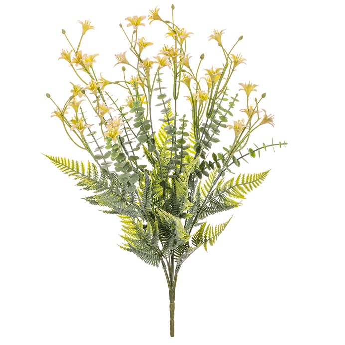 Zvonek - umělá kytice, mix zeleně, krémové květy