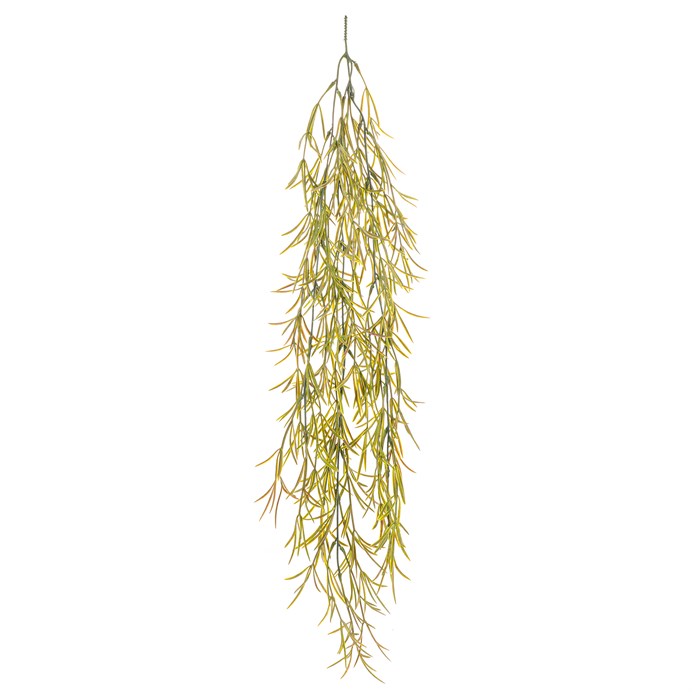 Umělý převis šalvěje rozmarýny v tmavě zelené barvě přináší do interiéru přírodní atmosféru bez nutnosti péče. Jemné listy z plastu věrně napodobují strukturu a odstíny skutečné rostliny, což vytváří přirozený vizuální efekt. Díky své délce je vhodný pro zavěšení na stěnu, police nebo do květinových aranžmá, kde oživí prostor a dodá mu svěžest. Převis je lehký a snadno se upevňuje, což umožňuje variabilní použití v různých typech interiérů.
