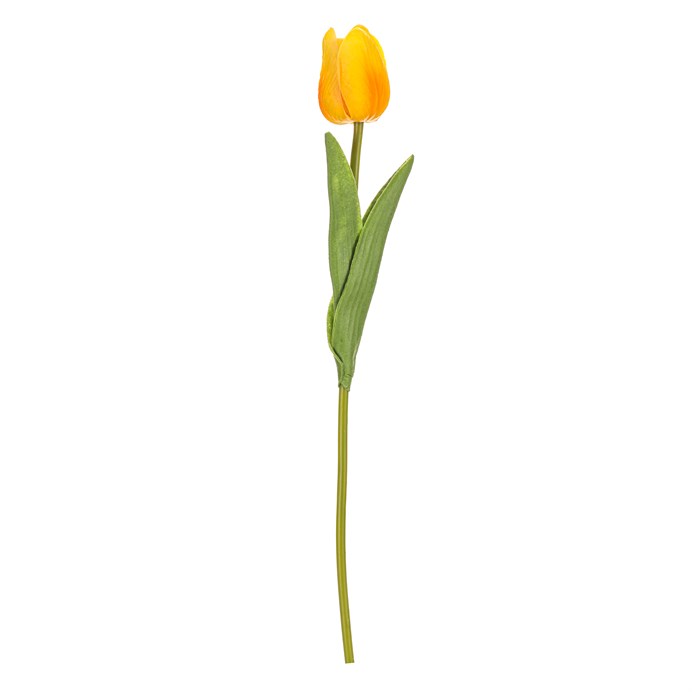 Umělý řezaný tulipán v jasně žlutém odstínu je vyroben z polyuretanové pěny, která věrně napodobuje přirozenou strukturu květu i listů. Jeho štíhlý stonek a detailní listy dodávají dekoraci realistický vzhled, který oživí každý interiér. Díky použitým materiálům je snadno udržovatelný a vhodný pro dlouhodobé aranžmá bez nutnosti péče. Tulipán je ideální pro kombinaci s dalšími květinami nebo jako samostatný dekorativní prvek v květináči či váze.