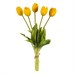 Svazek pěti řezaných tulipánů v tmavě lososové barvě je vyroben z měkkého plastu, který věrně napodobuje přirozenou texturu květů i listů. Každý květ má dlouhý, pružný stonek a bohaté zelené listy, které dodávají celému svazku plnost a živost. Díky použití plastu je dekorace nenáročná na údržbu a vhodná pro dlouhodobé aranžmá v interiéru. Svazek je ideální pro vytvoření jarní atmosféry v domácnosti, kanceláři nebo veřejných prostorách. Vynikne samostatně i jako součást větší květinové kompozice.