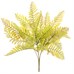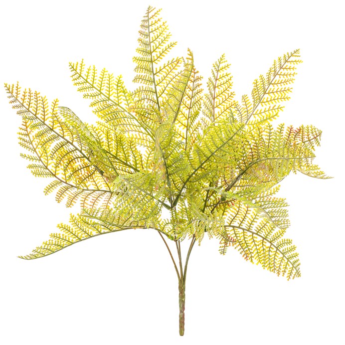 Umělý trs kapradí v zelené barvě nabízí věrnou imitaci přírodního listí s jemnou strukturou a bohatým větvením. Plastové listy jsou lehké a snadno udržovatelné, díky čemuž je dekorace vhodná pro dlouhodobé použití v interiérech i exteriérech. Kapradí vynikne jako samostatný dekorativní prvek nebo jako součást aranžmá v květináčích a vázičkách. Jeho přirozené odstíny zelené přispívají k vytvoření svěží a příjemné atmosféry.