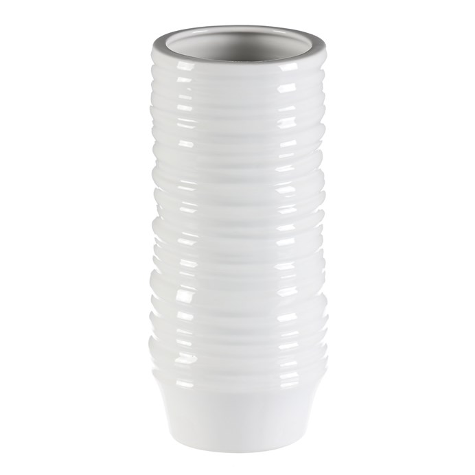 Tato keramická váza v bílé glazované barvě s kulatým tvarem a jemným vzorem vlnek na povrchu dodá vašemu interiéru elegantní a sofistikovaný vzhled. Jednobarevné provedení a hladký design z ní činí univerzální dekoraci a skvělý základ pro oblíbené květiny. Hodí se svým designem do jakéhokoli prostoru, ať už na stůl, poličku nebo komodu.
