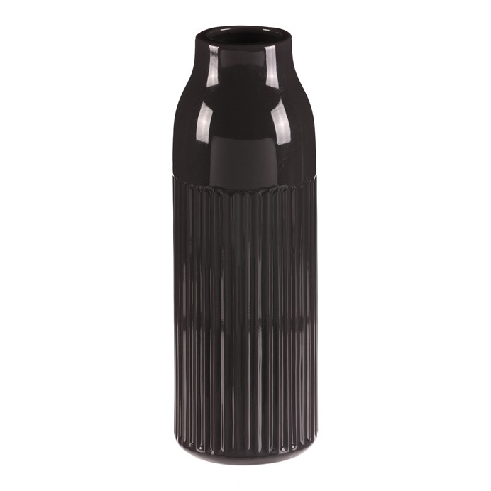 Keramická váza v antracitově šedé glazované barvě se zúženým hrdlem a jemným vzorem svislých vlnek na povrchu, dodá vašemu interiéru elegantní a sofistikovaný vzhled. Jednobarevné provedení a hladký design z ní činí univerzální dekoraci a skvělý základ pro oblíbené květiny. Hodí se tak do jakéhokoli prostoru, ať už na stůl, poličku nebo komodu.