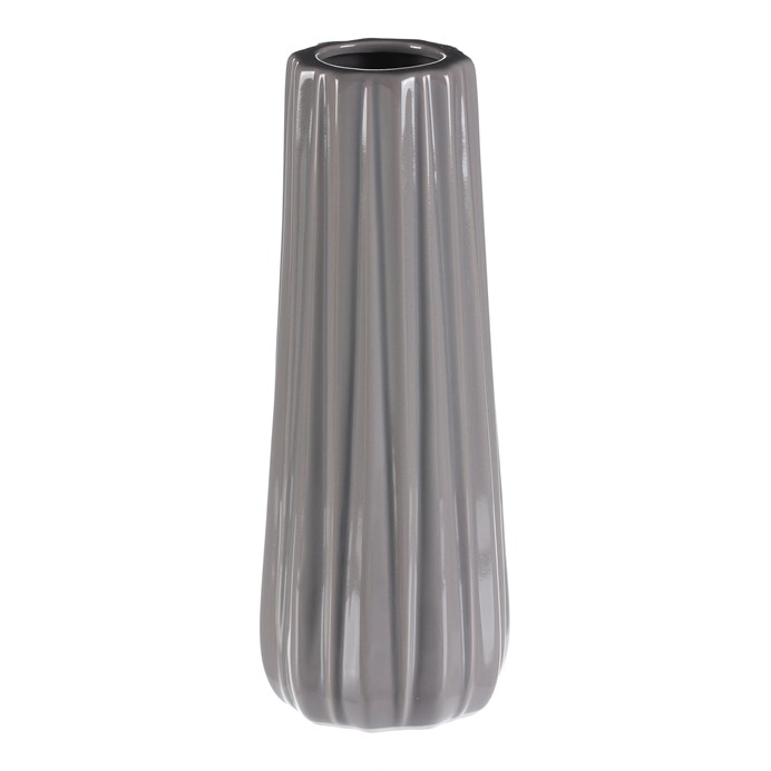 Keramická váza ve tmavé šedo-krémové barvě s jemnými svislými vlnkami na povrchu, přináší do vašeho prostoru sofistikovanou eleganci. Její jemný a postupně se zužující tvar, v kombinaci s jednolitým barevným provedením, skvěle doplní jakýkoli vybraný prostor a vytvoří neodolatelné aranžmá, ať už s květinami, nebo jinými dekoracemi.