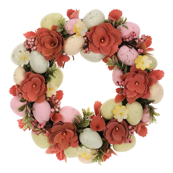Věnec velikonoční - pr. 33 cm, mix umělých květin a vajíček