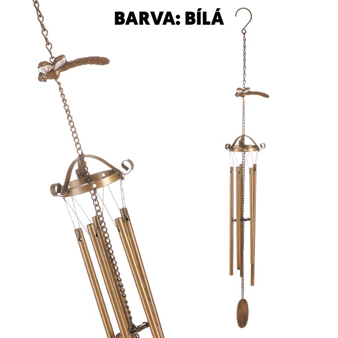 Kovová zvonkohra s motivem vážky v bílém odstínu přináší jemný zvuk a dekorativní prvek do interiéru i exteriéru. Její kovové trubky jsou zavěšeny na řetízku, který je doplněn o stylizovanou vážku, jež dodává zvonkohře originální vzhled. Zavěšení na háčku umožňuje snadné umístění na terasu, balkon nebo do zahrady. Zvonkohra vytváří příjemnou atmosféru díky ladným tónům, které se rozeznívají pohybem vzduchu.