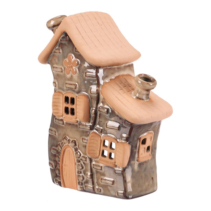 Domeček keramický - duo, na čaj. svíčku, vel. M, hnědý
