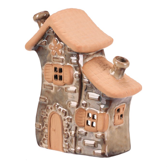 Domeček keramický - duo, na čaj. svíčku, vel. S, hnědý