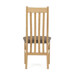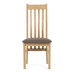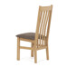 Jídelní židle z masivního dubu nabízí pevnou a stabilní konstrukci, která je navržena pro dlouhodobé používání. Vysoce ergonomicky tvarovaný opěrák svislých lamel poskytuje pohodlnou oporu zad a přispívá k lepšímu držení těla při sezení. Sedák je čalouněný hnědou látkou, která zajišťuje příjemný komfort a snadnou údržbu. Židle nemá područky ani otočný mechanismus, což ji činí vhodnou pro různé typy jídelních prostor. Přírodní odstíny dubového dřeva podtrhují tradiční i moderní styl interiéru.