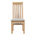 Jídelní židle s označením C-2100 SIL2 je vyrobena z masivního dubového dřeva, které zajišťuje pevnost a stabilitu. Světlé přírodní odstíny dřeva doplňuje sedák potažený světle šedou látkou, která nabízí příjemný komfort při sezení. Židle disponuje ergonomicky tvarovaným vysokým opěrákem s vertikálními dřevěnými lamelami, které podporují správné držení těla během stolování. Masivní nohy jsou pevně spojeny vodorovnými výztuhami, což zvyšuje celkovou odolnost a nosnost židle. Díky jednoduchému a nadčasovému designu je vhodná do různých typů interiérů, kde kladou důraz na kvalitu a přírodní materiály.