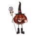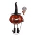 Oranžová kovová dýně s kloboukem a hůlkou zakončenou bubákem, sice vypadá strašidelně, ale její veselý výraz napoví, že to s tou hrůzou nebude tak zlé. Ideální dekorace na Halloween i podzimní večery, která potěší každého, kdo má rád trochu tajemna s úsměvem.
