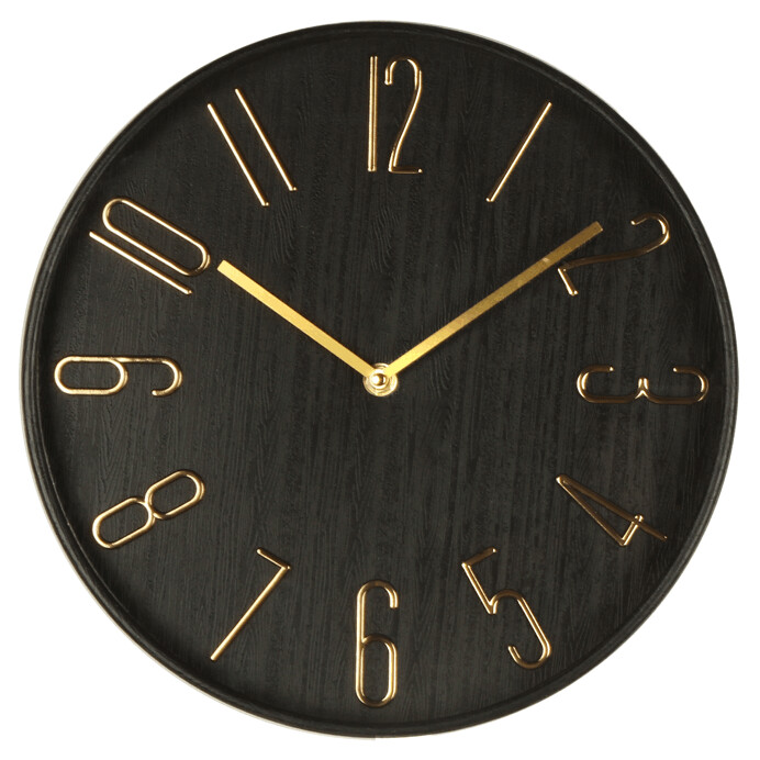 Hodiny nástěnné - pr. 30 cm, plastové, zlaté číslice, černé