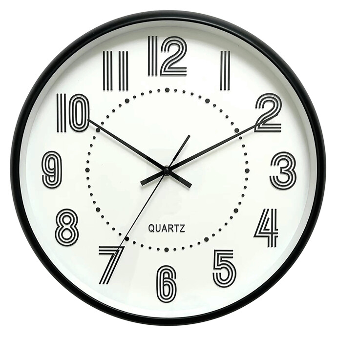 Nástěnné hodiny o průměru 41 cm v bílém plastovém provedení kombinují jednoduchost s přehledností díky výrazným pruhovaným číslicím. Černé ručičky a číslice vytvářejí kontrastní efekt, který usnadňuje orientaci na ciferníku. Lehké plastové pouzdro zajišťuje snadnou manipulaci a zavěšení na zeď. Hodiny jsou vhodné do domácností i kanceláří, kde oceníte jejich čistý design a praktickou funkci měření času.