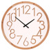 Nástěnné hodiny s průměrem 60 cm kombinují bílý ciferník z MDF s rámem z přírodního dřeva, který dodává celku teplý a přirozený vzhled. Číslice jsou vyřezány přímo do ciferníku, což vytváří zajímavý prostorový efekt a zároveň zajišťuje dobrou čitelnost. Černé ručičky kontrastují s bílým pozadím a umožňují snadné odečítání času. Hodiny jsou vhodné pro zavěšení v obývacím pokoji, kuchyni nebo kanceláři, kde doplní interiér o jednoduchý a funkční prvek. Díky použitým materiálům se snadno udržují a jsou navrženy pro dlouhou životnost.