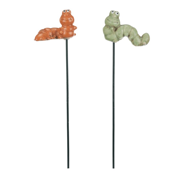 Keramická housenka na dřevěné špejli v oranžovém a zeleném provedení přináší hravý dekorativní prvek vhodný pro ozdobení květináčů, zahradních aranžmá nebo interiérových květin. Každý kus je ručně tvarovaný s důrazem na detail, což dodává výrobku jedinečný charakter. Dlouhá dřevěná špejle umožňuje snadné zapíchnutí do zeminy či substrátu a stabilní držení. Housenka je ideální pro vytvoření veselého a přírodního vzhledu v domácnostech i na zahradách. Cena je uvedena za jeden kus, dodávaný v mixu dvou barevných variant.