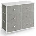 Komoda o rozměrech 80x30x71 cm kombinuje pevnou kovovou konstrukci s matnou MDF deskou v dekoru dub, která dodává nábytku přírodní vzhled. Šest prostorných zásuvek z netkané textilie nabízí praktický úložný prostor pro různé drobnosti a zároveň usnadňují organizaci. Kovové nohy zajišťují stabilitu a dlouhou životnost, zatímco lehký materiál zásuvek přispívá k snadné manipulaci. Matný povrch desky je odolný vůči běžnému opotřebení a snadno se udržuje. Komoda je vhodná do moderních i minimalistických interiérů, kde oceníte funkčnost i jednoduchý design.