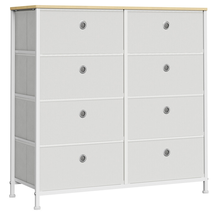 Komoda AUK-E1024 WT nabízí praktické řešení úložného prostoru v moderním provedení. Její deska je vyrobena z MDF s matným dubovým dekorem, který dodává nábytku přírodní vzhled a snadnou údržbu. Pevný kovový rám a nohy zajišťují stabilitu a dlouhou životnost, zatímco osm látkových zásuvek z netkané textilie poskytuje lehké a flexibilní úložiště pro různé drobnosti. Komoda má rozměry 80 × 30 × 82 cm, což ji předurčuje k využití v menších i větších prostorách, kde je potřeba uspořádat věci přehledně a efektivně.