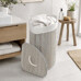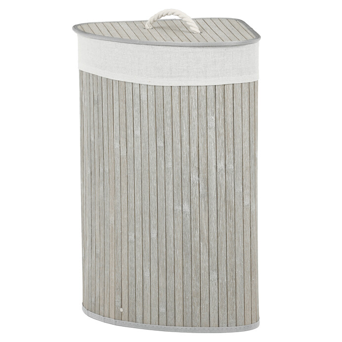 Koš prádelní - bambusový, rohový s víkem, šedý