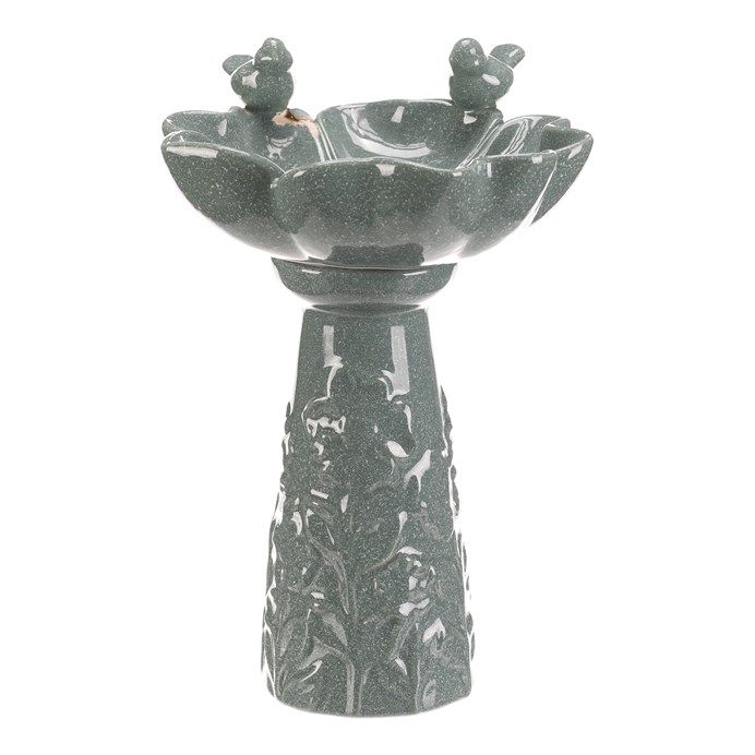 Krmítko/pítko - keramické, květ s ptáčky, stojaté, tm. mentolové