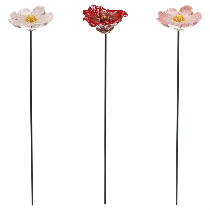Keramický květ na zápichu v provedení mixu tří barev přináší do zahrady nebo květináče jemný dekorativní prvek. Každý květ je ručně tvarovaný s detailně propracovanými okvětními lístky a středem v kontrastní barvě, který zvýrazňuje jeho přirozený vzhled. Dlouhý kovový zápich umožňuje snadné zapíchnutí do zeminy či substrátu a zajišťuje stabilitu dekorace. Vhodný je pro oživení venkovních i vnitřních prostor, kde dodá barevný akcent bez nutnosti péče. Keramický materiál se snadno udržuje a odolává povětrnostním vlivům.
