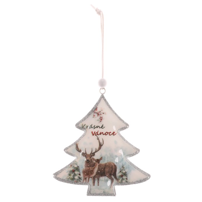 Přeneste se do kouzelné atmosféry Vánoc s tímto elegantním kovovým ověskem ve tvaru stromečku. Ozdoben je lesklým barevným obrázkem a okraj má doplněn třpytkami, což mu přidává na eleganci. S nápisem „Krásné Vánoce“ a výjevem zimní krajiny s jeleny, přináší do vašeho domova nezapomenutelnou vánoční atmosféru s pravým nádechem zimy. S provázkem, který je nedílnou součástí této ozdoby, ji snadno zavěsíte na vánoční stromek či jiné místo, dle vašich představ. Svým pojetím patří určitě k netradičním vánočním dekoracím, ale o to krásnějším!