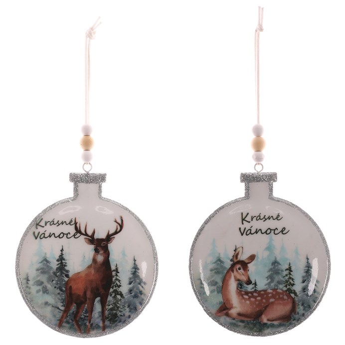 Přeneste se do kouzelné atmosféry Vánoc s těmito elegantními kovovými ověsky ve tvaru baňky a v mixu 3 druhů. Každý z nich je ozdoben poutavým barevným obrázkem, který se leskne a odráží světlo, takže vytváří zároveň i úžasný světelný efekt. S nápisem „Krásné Vánoce“ a výjevem zimní krajiny s jelenem či laněmi, přinášejí do vašeho domova nezapomenutelnou vánoční atmosféru s pravým nádechem zimy. S provázkem, který je nedílnou součástí každé z ozdob, je snadno zavěsíte na vánoční stromek či jiné místo, dle vašich představ. Svým pojetím patří určitě k netradičním vánočním dekoracím, ale o to krásnějším!