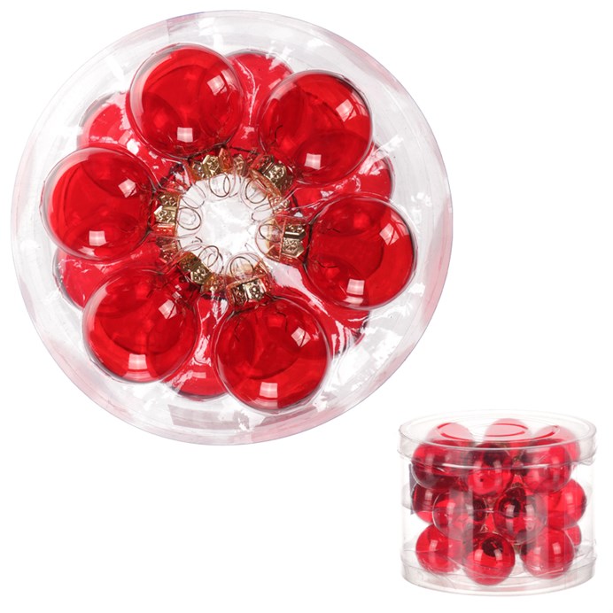 Ozdoby skleněné - pr. 4 cm, barva červená, cena za balení (18 ks)