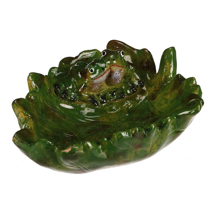 Pítko/krmítko - keramické, tvar list, s dvěma žábami, barva zelená