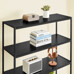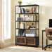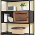 Regál s rozměry 100x35x180 cm kombinuje pevný kovový rám v černé barvě s policemi z MDF desek v odstínu Old wood, které dodávají nábytku přírodní vzhled. Kovové nosné vzpěry zajišťují stabilitu a dlouhou životnost celé konstrukce. Čtyři otevřené police nabízejí dostatek prostoru pro vystavení dekorací nebo uložení knih, zatímco spodní část je vybavena uzavíratelnou skříňkou s posuvnými dvířky s dekorativním lamelovým vzorem. Design regálu je moderní a zároveň funkční, vhodný do obývacích pokojů, pracovních prostor i komerčních interiérů.
