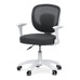 Dětská židle s šedým síťovinovým potahem nabízí prodyšné a pohodlné sezení vhodné pro mladší uživatele. Opěradlo je z lehké a pevné síťoviny, která podporuje cirkulaci vzduchu, zatímco sedák je čalouněný látkou stejné barvy pro příjemný komfort. Bílé plastové nohy s pěti rameny zajišťují stabilitu a jsou vybaveny kolečky určenými pro tvrdé podlahy, což umožňuje snadný pohyb bez poškození povrchu. Odklápěcí područky přispívají k flexibilitě používání a výškově nastavitelný mechanismus umožňuje přizpůsobení výšky sedáku podle potřeby dítěte. Židle je navržena tak, aby kombinovala funkčnost s jednoduchým designem vhodným do dětských pokojů.