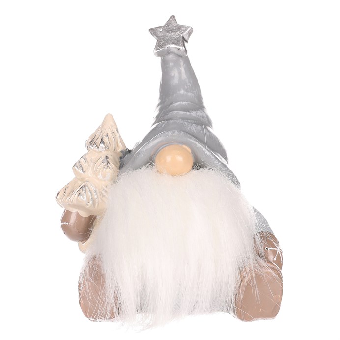 Tato vánočně oděná figurka sedícího trola se špičatou čepicí přináší do vašeho svátečního interiéru neobyčejnou ozdobu. S převládajícími béžovými, bílými a stříbrnými odstíny dokonale zapadne do vánoční výzdoby. Postava trola má svůj obličej zakrytý, a vidíte pouze jeho bambulatý nos a huňatý plnovous, což mu dodává záhadný a zároveň hravý vzhled. Umístěte ho na dobře viditelné místo a vystavte jej na obdiv všem pozorovatelům.