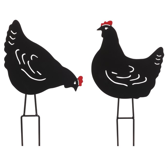 Kovová slepička na zápichu v černém provedení s červeným hřebínkem přináší do zahrady nebo květináče dekorativní prvek s jednoduchým a výrazným designem. Menší rozměry a lehká konstrukce umožňují snadné zapíchnutí do země či substrátu, kde slepička pevně drží. V sadě jsou dva různé tvary slepiček, které lze libovolně kombinovat pro zajímavý vizuální efekt. Povrch je upraven tak, aby odolával venkovním podmínkám a zachoval si stálost barev. Ideální doplněk pro oživení venkovních i vnitřních prostor.