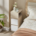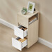 Noční stolek ANT-E1065 BUK v přírodní béžové barvě kombinuje MDF materiál s dekorem buku, který dodává nábytku jemný a přirozený vzhled. Kompaktní rozměry 25 × 30 × 65 cm umožňují umístění i do menších prostor, přičemž nabízí praktický úložný prostor ve formě otevřené přihrádky a dvou zásuvek s bílým čelním panelem. Stolek je stabilní díky pevné základně z MDF a jeho povrchová úprava usnadňuje údržbu. Design s čistými liniemi a kontrastem přírodního a bílého odstínu podporuje univerzální využití v různých interiérech. Tento model je ideální pro uložení drobných předmětů a zároveň poslouží jako elegantní doplněk ložnice či obývacího pokoje.