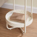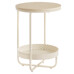 Odkládací stolek s rozměry 40x40x55 cm kombinuje desku z MDF s dekorem běleného dubu a matnou povrchovou úpravou s pevnou kovovou konstrukcí v béžovém odstínu. Kulatá deska nabízí stabilní plochu pro odložení drobných předmětů, zatímco spodní odkládací prostor s perforovaným kovovým okrajem poskytuje praktické místo pro další uskladnění. Kovové nohy jsou vybaveny rektifikačními patkami, které umožňují vyrovnání stolku na nerovném povrchu a zajišťují stabilitu. Celkový design je jednoduchý a funkční, vhodný do moderních i klasických interiérů.