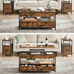 Konferenční stolek AKF-E1252 OLW kombinuje praktický úložný prostor s industriálním designem v odstínu old wood. Deska stolu je vyrobena z MDF s povrchovou úpravou připomínající staré dřevo, která dodává stolku rustikální charakter a snadnou údržbu. Pevná kovová podnož zajišťuje stabilitu a dlouhou životnost, zatímco výklopná horní deska odhaluje prostorný úložný prostor vhodný pro uložení časopisů, dálkových ovladačů nebo jiných drobností. Dvě spodní zásuvky s kovovými úchytkami doplňují funkčnost stolku a umožňují organizaci menších předmětů. Rozměry 50x100x48-63 cm poskytují dostatek prostoru pro pohodlné použití v obývacím pokoji.