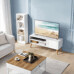 TV stolek o šířce 120 cm je vyroben z MDF desky v bílé barvě, která se snadno udržuje a nabízí hladký povrch. Stabilní nohy z masivního kaučukového dřeva dodávají stolku pevnost a přírodní vzhled, který kontrastuje s moderním bílým korpusem. Stolek disponuje praktickým úložným prostorem rozděleným na dvě otevřené police a jednu uzavíratelnou skříňku, což umožňuje efektivní organizaci elektroniky i doplňků. Otevřená část je vybavena průchodkou pro kabeláž, která usnadňuje zapojení zařízení. Kompaktní rozměry a čistý design činí tento konferenční stolek vhodným doplňkem do moderních obývacích pokojů.