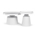 Sada dvou konferenčních stolů v béžovém matném provedení nabízí kombinaci funkčnosti a moderního designu. Obě desky i nohy jsou vyrobeny z kovu, což zajišťuje stabilitu a pevnost stolů. Stolky mají dekorativní hranu, která dodává jemný designový detail, a jejich povrch je snadno udržovatelný a odolný vůči běžnému opotřebení. Větší stůl má průměr 68,5 cm a výšku 43 cm, menší stůl průměr 49 cm a výšku 50,5 cm, což umožňuje variabilní uspořádání v prostoru. Díky svému neutrálnímu odstínu béžové barvy se hodí do různých interiérů.