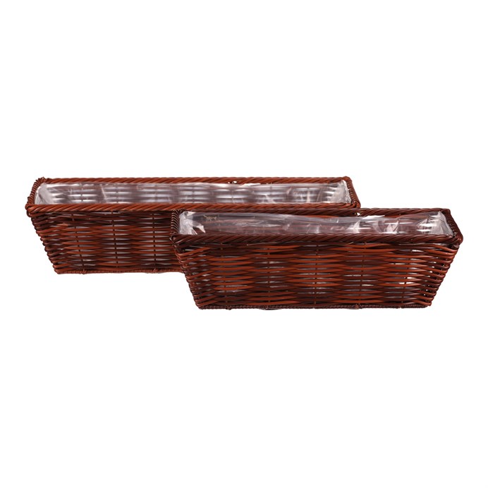 Sada dvou obdélníkových truhlíků z hnědého polyratanu nabízí praktické a estetické řešení pro pěstování rostlin na balkonech, terasách či okenních parapetech. Polyratanové provedení je navrženo pro dlouhou životnost a snadnou údržbu, přičemž plastová vložka uvnitř truhlíků zajišťuje ochranu před prosakováním vody. Truhlíky mají přírodní vzhled ratanu s pravidelným vzorem pletení a decentní lesklý povrch, který podtrhuje jejich přírodní odstíny. Díky svému tvaru a rozměrům jsou vhodné pro různé druhy květin i bylinek, přičemž sada dvou kusů umožňuje variabilní uspořádání podle potřeby.