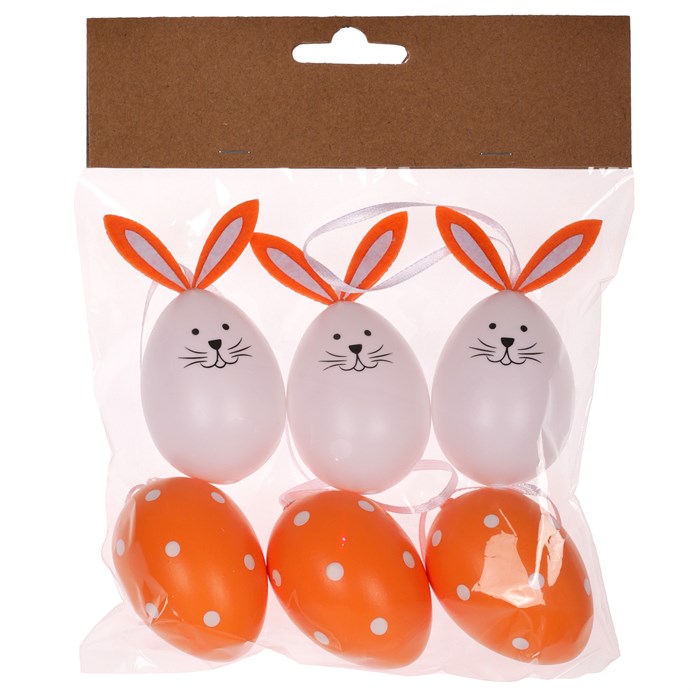 Vajíčka plastová - zajíčci, oranžovo-bílé, cena za balení (6 ks)