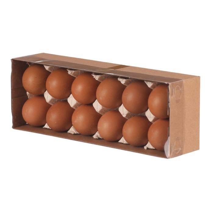 Balení obsahuje 12 pravých slepičích vajec v hnědém provedení, vhodných pro široké využití k aranžování. Vajíčka jsou uložena v praktickém papírovém obalu, který zajišťuje jejich bezpečné uskladnění a snadnou manipulaci. Hnědá skořápka je přirozená a typická pro tento druh vajec. Tento produkt je určen výhradně pro dekorativní účely.