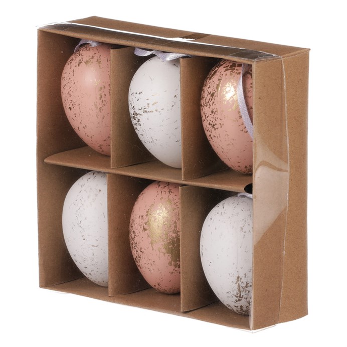 Vajíčka s pírkem - plast, mix barev, pozlacená, cena za balení (6 ks)