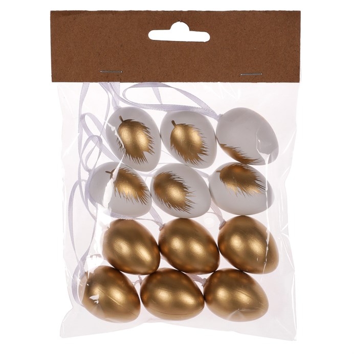 Vajíčko plastové - se zlatým pírkem, 4 cm, mix 2, cena za balení (12 ks)