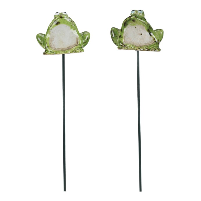 Žába keramická - na špejli, zelená, mix 2 druhů, cena za 1 ks