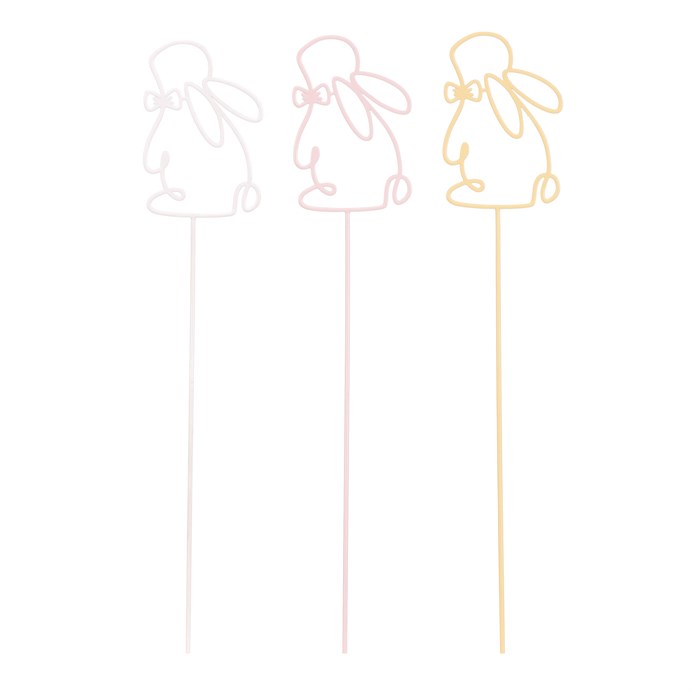 Kovový zápich ve tvaru zajíce v jemných pastelových odstínech růžové, žluté a bílé přináší do zahrad i květináčů hravý a jarní akcent. Jednoduchý a lehký design s mašličkou na uších dodává dekoraci jemnost a vkusný detail. Zápich je vhodný pro venkovní i vnitřní použití, snadno se zapichuje do zeminy či substrátu. Díky kovovému provedení je stabilní a odolný vůči povětrnostním vlivům. Velikost S umožňuje univerzální využití v různých aranžmánech.