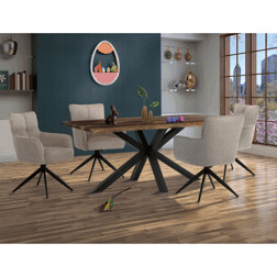 Elegantní otočná jídelní židle značky Autronic přináší do vaší jídelny pohodlí i styl. Béžový potah z voděodolné látky zaručuje snadnou údržbu a dlouhou životnost. Sedák je vybaven taštičkovými pružinami, které zajišťují maximální komfort při sezení. Stabilní centrální kovová podnož v černé barvě podtrhuje moderní design a dodává židli jedinečný vzhled. Díky otočnému mechanismu s vratnou funkcí je židle praktická a flexibilní. Ideální volba pro moderní interiéry, které kladou důraz na funkčnost a estetiku.